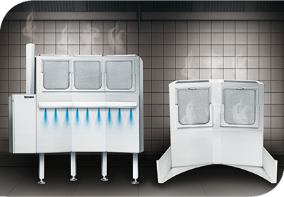 Built-in fume hood Safe and healthy working environment for chefs The new cooking fume kitchen system ensures a safe and healthy working environment for chefs.